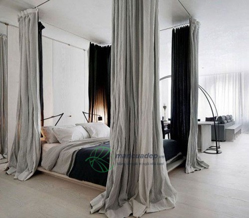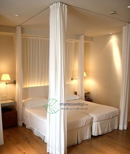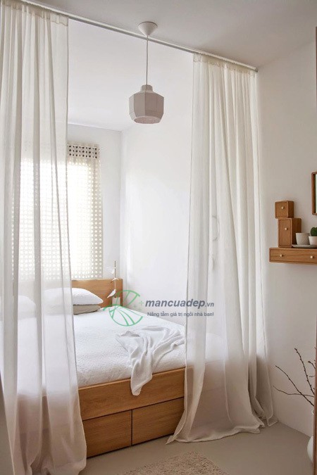 Chỉ cần những tấm rèm nhẹ nhàng, bạn có thể khiến nơi nghỉ ngơi của mình trở nên kín đáo và mơ mộng.
