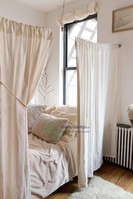 Bạn có thể biến một góc nhà thành nơi ngủ nghỉ kín đáo nhờ chiếc rèm trắng.