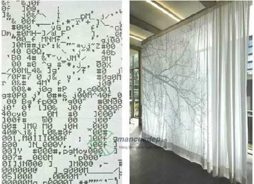 Mềm mại, nhẹ nhàng với rèm cửa chất liệu lụa có in hình cây in bóng.